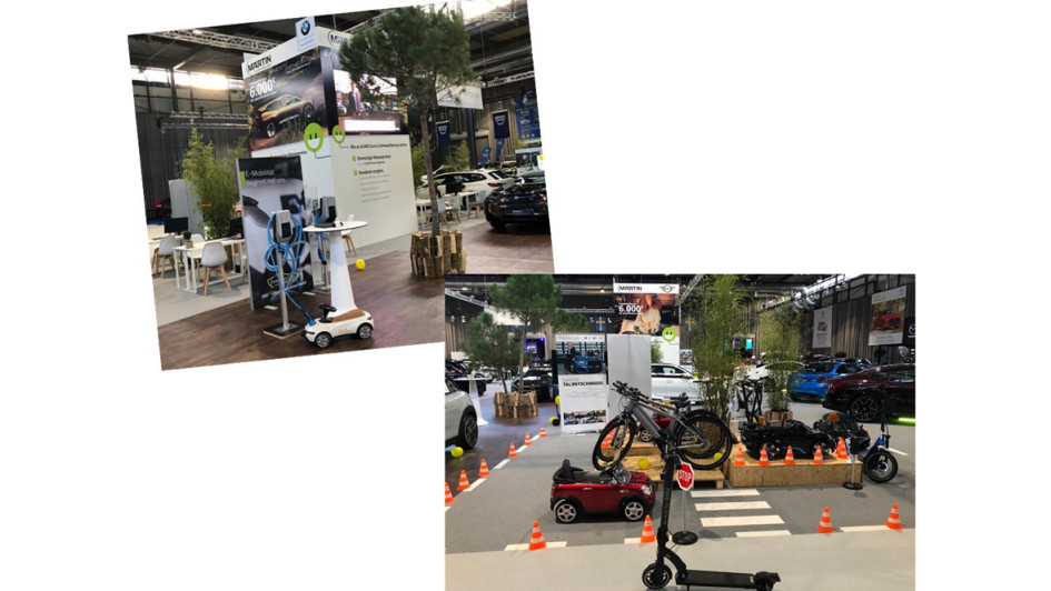 von 28: Die Details auf dem Stand machen die Faszination aus. Hier die E-Mobilität und das Thema Verkehrssicherheit, die Liebe zum Auto. Von jung an! Man beachte die diversen Offerten der E-Mobility - E-Bikes, E-Scooter und Bobby Car.