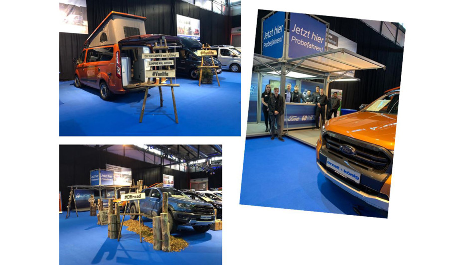 von 28: Der deutsche Messeverkaufsmeister, Ernst & König in Freiburg, präsentierte auf 3.500 Quadratmetern Ausstellfläche die komplette Ford-Welt. Ob Focus, Mondeo Hybrid, SUV Kuga, neuer Puma oder die Nutzfahrzeuge mit den Tourneo- und Transitmodellen inklusive dem Reisemobil Custom Nugget.