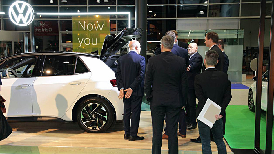 von 28: Highlight auf dem VW-Stand, der ID.3, der noch vor der offiziellen Markteinführung auf der Messe stand. Bestseller Golf oder der T-Roc R, Multivans und Cady gehörten ebenso zur Offerte.
