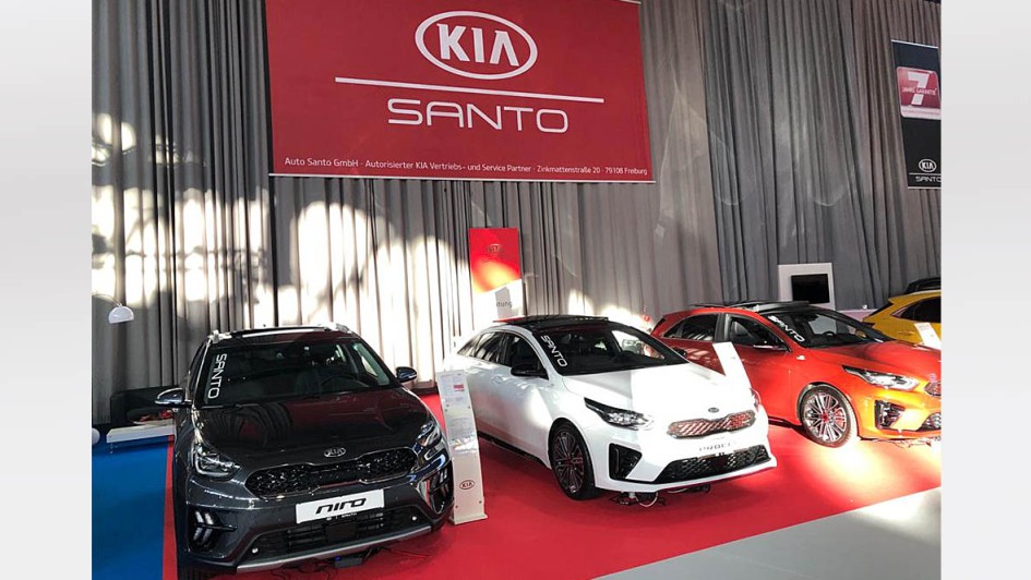 von 28: Auto Santo, Freiburg präsentierte die komplette Modellpalette von Kia. Vom Picanto bis zum SUV Sorento. Dazu gehören die vollelektrischen SUV e-Soul und e-Niro mit Reichweiten von 615 Kilpmetern. Die sieben Jahre Herstellergarantie seien hervorgehoben.