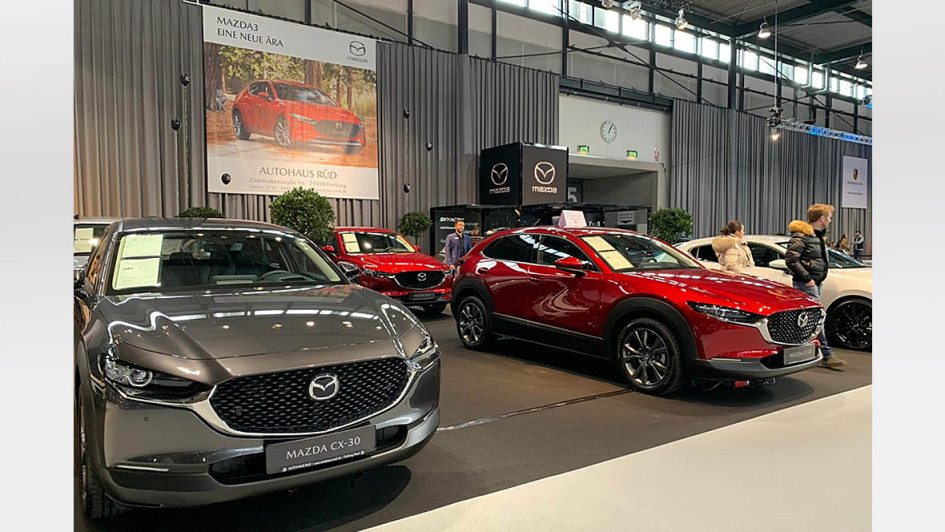 von 28: Das Autohaus Rüd, Freiburg war mit Mazda vertreten. Mazda 2 und Mazda 3 seien aufgerufen. Ebenso der SUV CX-30. Dann die Modelle CX-3 und der einmalige Roadster MX-5.
