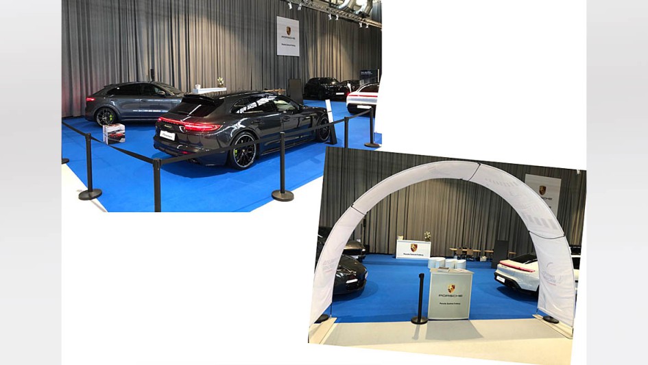 von 28: Porsche wird in Freiburg inzwischen durch die Graf Hardenberg-Gruppe vertreten. Und so waren sämtliche Baureihen zu sehen. Darunter der brandneue vollelektrische Taycan Turbo S. Oder dann der Panamera 4E-Hybrid Sport aturismo. Dann das Cayenne E-Hybrid Coupé. Als Porsche Klassiker das 911 Carrera 4S Cabriolet.