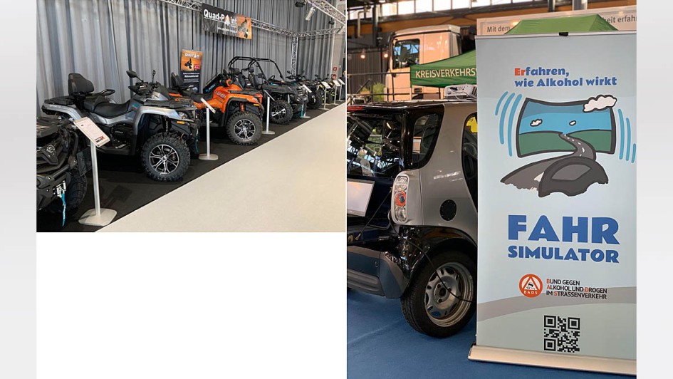 von 28: Die Quads durften nicht fehlen. Im Freigelände gab es ein ADAC-Fahrsicherheitstraining mit speziellem Kinderprogramm. Auch das Autofahren ohne Führerschein wurde ermöglicht. Erste Probefahrstunde. Auf der Fläche der Verkehrspolizeidirektion Freiburg in Halle 4 wurde über Simulatoren dargestellt, welche Kräfte beispielsweise bei einem Überschlag frei werden.