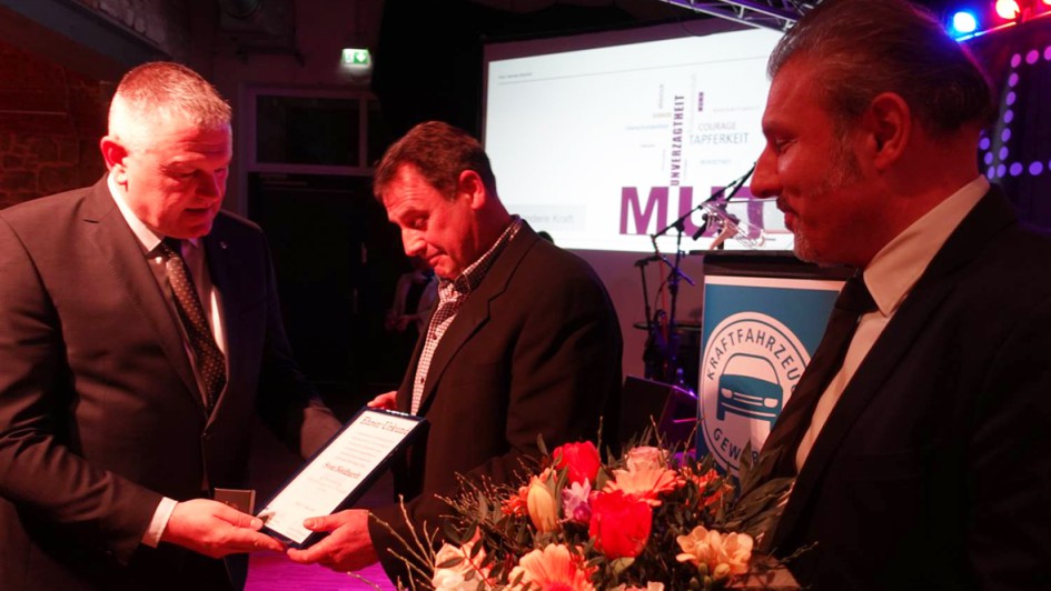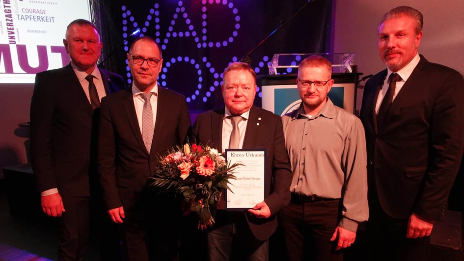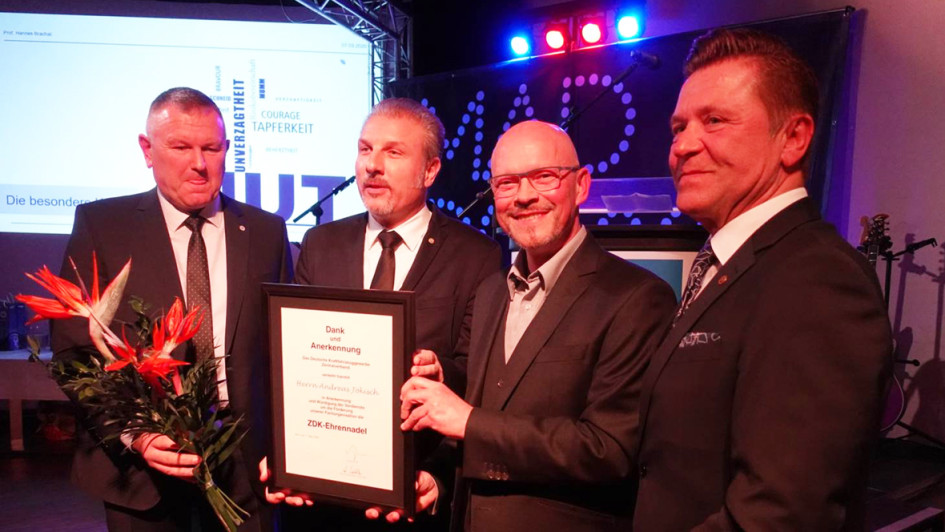 von 18: Die Festgäste haben das nicht gerne gehört, als Obermeister Andreas Jokisch ankündigte, bei der nächsten Wahl sein Amt zur Verfügung zu stellen. Landesverbandspräsident Holger Schade ließ nun all die Stationen von Andreas Jokisch aufleben, die er seit 1994 – damals als 25-jähriger Jungmeister – einbrachte. Das ging weiter über den "Autofrühling", den Bereich Berufsschule, die Marketingaktivitäten, die mehrfach zum "Blauen ZDK-Kalligraphen" führten, Kassenprüfung, stellv. Obermeister und seit 2014 in der ersten Reihe verantwortlich. Bundesinnungsmeister Wilhelm Hülsdonk überreichte ihm die ZDK-Ehrennadel in Silber. Großer, dankbarer Applaus für einen, der mit dieser hohen Auszeichnung richtig und gelungen überrascht wurde. In seinem Dankesgruß stand obenan die Unterstützung durch die Ehefrauen, die einem oft den Rücken freihalten.