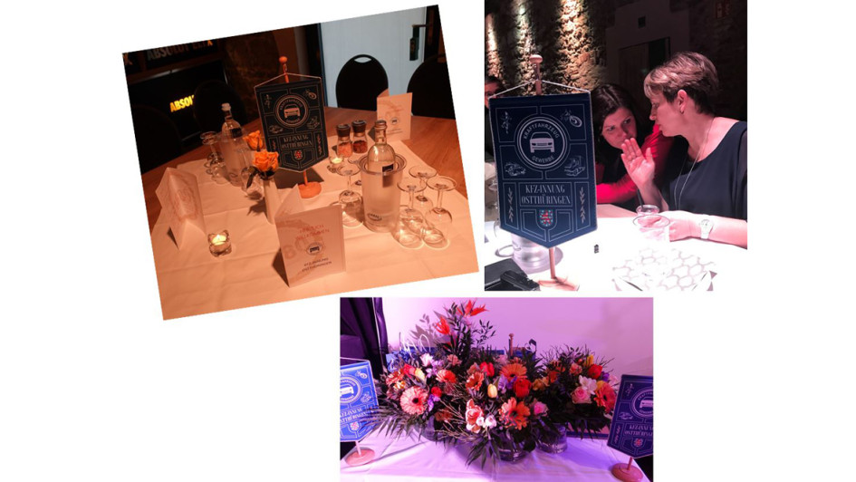 von 18: Es war abermals die Liebe zum Detail, die für ein echtes Fest sorgte. Weiße Tischdecken, Blumenschmuck, Speisekarte, die Kfz-Innungsfahne und ein großartiges Buffet mit allerlei Getränken. Über den Abend stieß man auch vielfach auf persönliche Dialoge. Das Blumenmeer war für die Ehrungen vorbereitet.