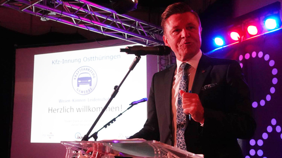 von 18: Holger Schade, der Präsident des Kfz-Landesverbandes Thüringen, artikulierte ein deutliches Ja zur Emissionsfreiheit des Autos. Dabei gelte es aber noch offene Fragen gerade zur Ladestruktur zu klären. Hier bedürfe es u.a. einer stärkeren Unterstützung seitens der Hersteller. Schade hob auch den hohen Kundenzufriedenheitsgrad hervor, den die Branche Tag für Tag erarbeite. Er dankte der Kfz-Innung für die stets fruchtbare Zusammenarbeit.