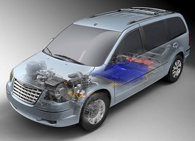 von 11: Im Chrysler EV auf Basis des Grand Voyager kommt wie im Jeep EV ein Elektromotor plus Benzingenerator zum Aufladen der Batterie zum Einsatz.