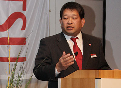 von 5: Atsuhiko Tanimoto, Präsident der Daihatsu Deutschland GmbH, stimmte die versammelte Händlerschaft mit einer Überblicksrede auf die anstehenden Veränderungen ein.