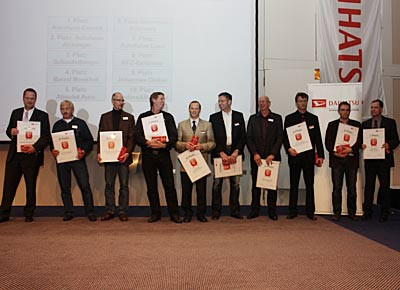 von 5: Zum Abschluss der Tagung ehrte Daihatsu Deutschland die zehn verkaufsstärksten Händler und Betriebe, die erfolgreich das Zertifizierungsprogramm Daihatsu Customer Service Marketing durchlaufen haben.