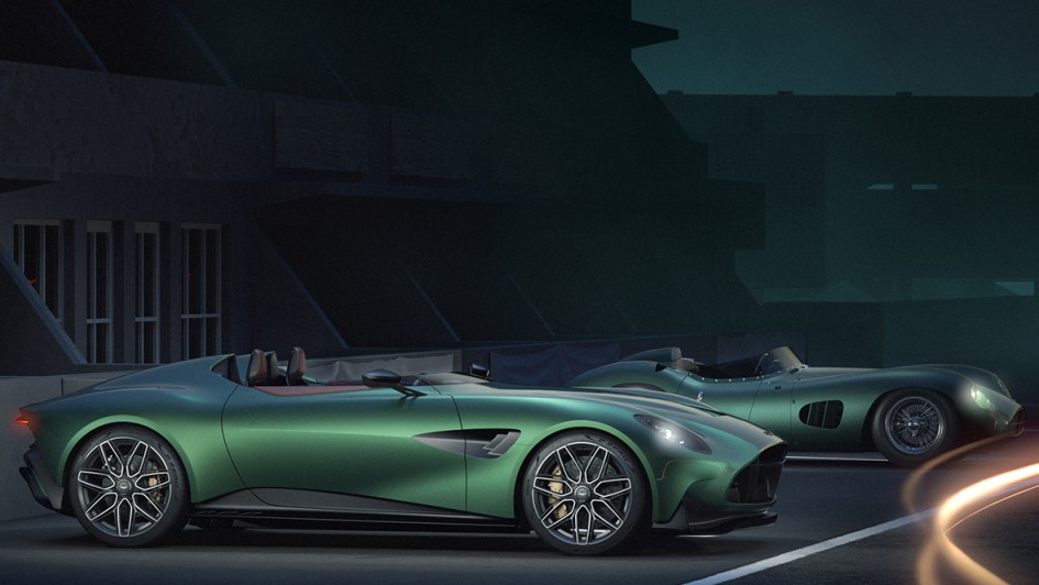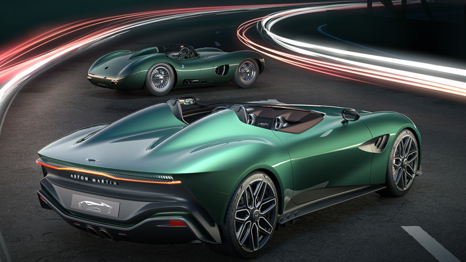 von 5: Radikal offenen Roadster haben bei Aston Martin eine lange Tradition. Vorne der neue DBR22, hinten der ab 1956 gebaute Rennsportwagen DBR1.
