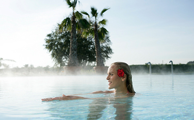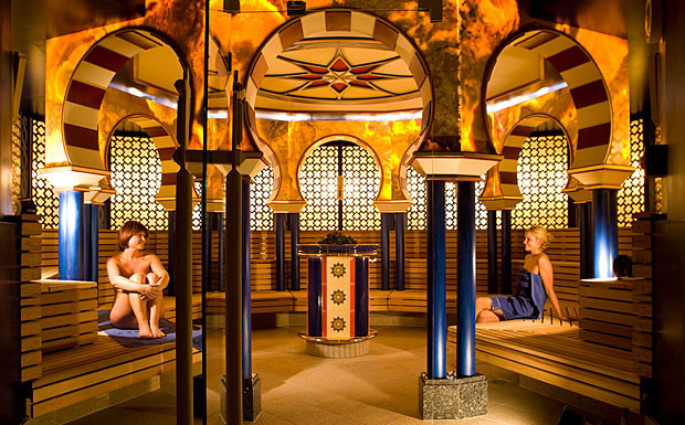 von 35: Nicht nur kalt, sondern auch heiß sind die Behandlungen in der Therme. Die Saunalandschaft verfügt unter anderem über ein Alhambra im maurischen Stil.