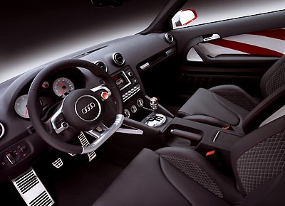 von 8: Die Skalen der Instrumente sind weiß gefärbt, das unten abgeflachte Lenkrad erinnert an den R8, aus dem auch der Monitor für Navigation und Entertainment samt seinem Bedienfeld stammt.