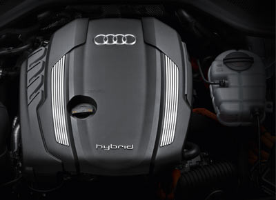 von 9: Das Audi-Flaggschiff ist als hocheffizienter Parallelhybrid konzipiert. Der 2.0 TFSI bringt es auf 155 kW (211 PS).