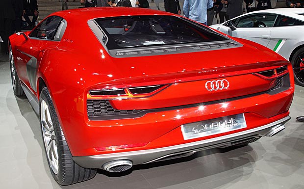 von 9: Aller Umweltdiskussionen zum Trotz kommt auf der IAA auch die Spaßfraktion nicht zu kurz. So spielt Audi mit einer überraschenden Studie das Thema Crossover-Sportwagen und nutzt dabei alte Gene des Konzerns. (Foto: Audi)
