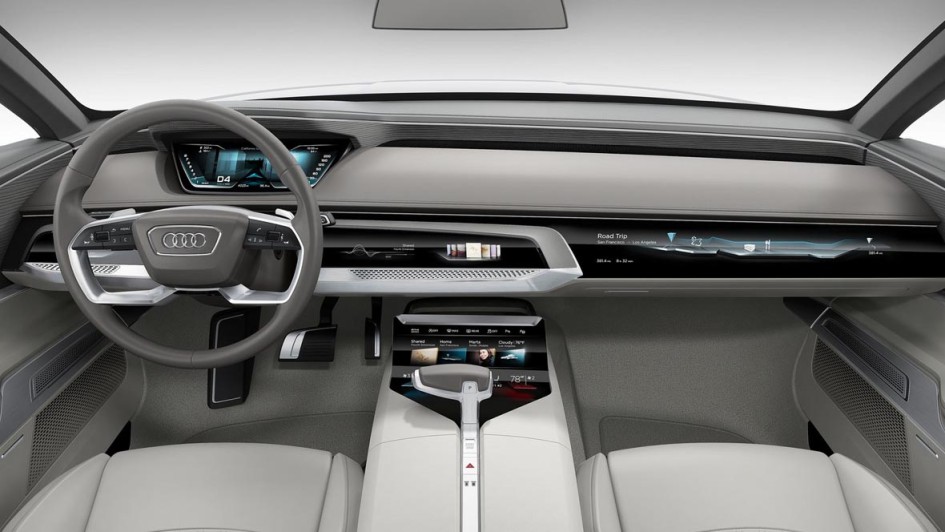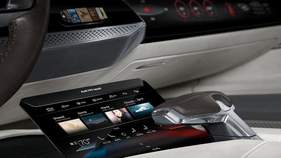 von 10: Auch im Innenraum hat sich Audi etwas einfallen lassen: Die Front der Instrumententafel ist in voller Breite als Anzeigefläche gestaltet und integriert drei Touchdisplays.