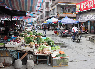 von 12: … so befremdlich schien dem Europäer so mancher chinesische Markt, wie hier in Genghezheng. Fotos von zum Verzehr verkauften Hunden und Katzen haben wir uns gespart. Mit der Zeit wurde die Strecke immer ländlicher …