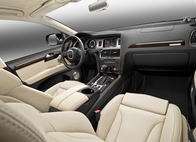 von 13: Zur Serienausstattung des gelifteten Q7 gehören u. a. eine geschwindigkeitsabhängige servotronic-Lenkung, ein doppelter Ladeboden samt Ablagefach und Schmutzwanne sowie eine Dachreling, eine Komfortklimaautomatik und das Bediensystem MMI Radio inklusive CD-Audioanlage und acht Lautsprechern.