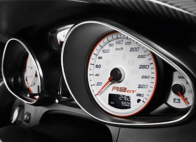 von 11: Den Spurt von 0 auf 100 km/h schafft der R8 GT in 3,6 Sekunden; bis zur 200er-Marke vergehen 10,8 Sekunden. Das maximale Drehmoment von 540 Nm liegt bei 6 500 Touren an.
