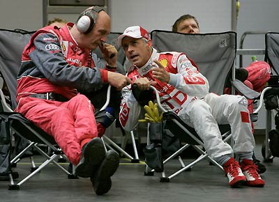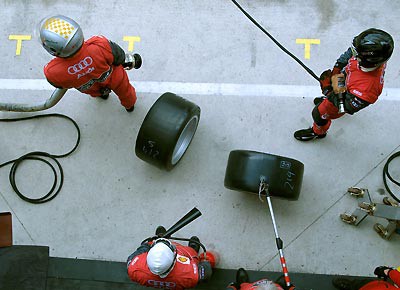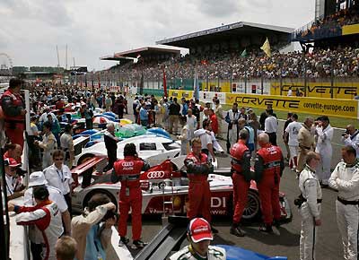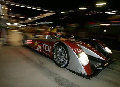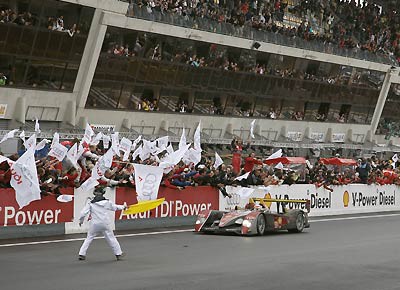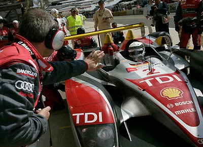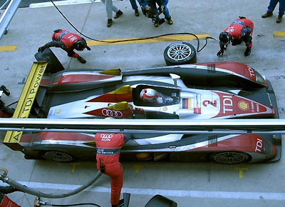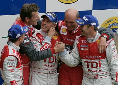 von 15: Das Sieger-Team: Allan McNish, Ralf Jüttner (Team Manager Audi Sport Team Joest), Dindo Capello, Dr. Wolfgang Ullrich (Audi Motorsportchef), Tom Kristensen.