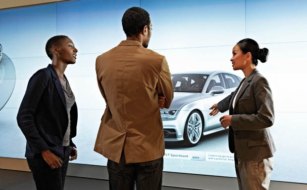 von 8: Mit der sogenannten Powerwall hält zudem eine neue digitale Präsentationstechnik im Terminal Dubai Einzug, die dem jüngst in London gestarteten Store-Konzept "Audi City" entstammt.
