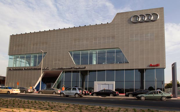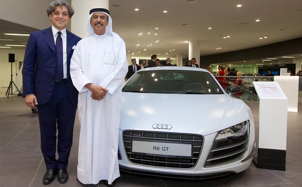 von 8: Audi-Vertriebsvorstand Luca de Meo und Khalifa Juma Al Nabooda, Präsident des Markenpartners "Al Nabooda Automobiles", eröffneten das über 20 Millionen Euro teure Terminal.