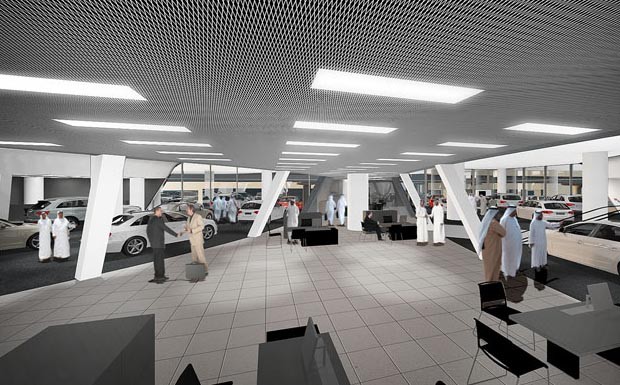 von 8: Das Gebäude bietet eine Ausstellungs- und Bürofläche von über 8.700 Quadratmetern auf drei Ebenen. Zwei Aufzüge transportieren die Fahrzeuge zwischen den Stockwerken.