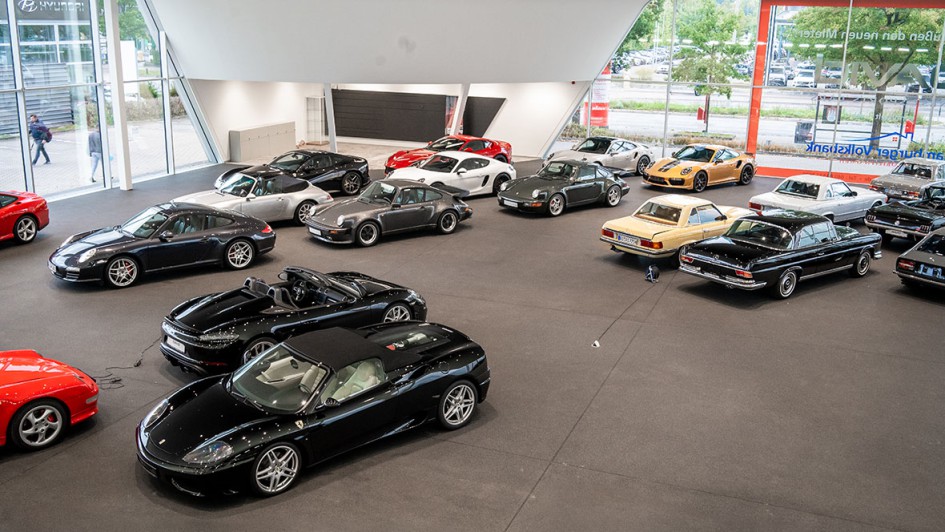 von 12: Moderne Fahrzeuge und Oldtimer stehen Seite an Seite - als freier Händler muss Geschäftsführer Benjamin David keine Herstellervorgaben erfüllen.