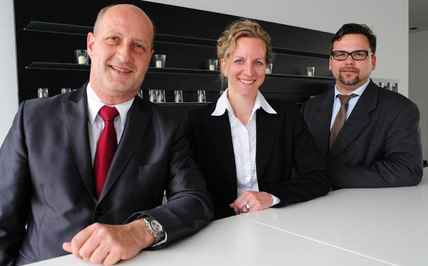 von 22: Stolz auf den neuen Standort (v.l.): Standortleiter André Reiser (Audi Berlin Gmb), Architektin Sabine Burkert und Tobias Fruh (beide von Volkswagen Immobilien VWI).