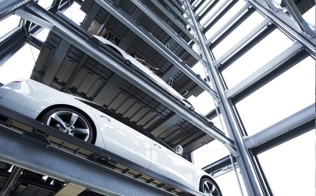 von 22: Auch die Teile-Logistik bei Audi Berlin Adlershof bedient sich modernster Systeme, hier der Teile Paternoster im Einsatz.
