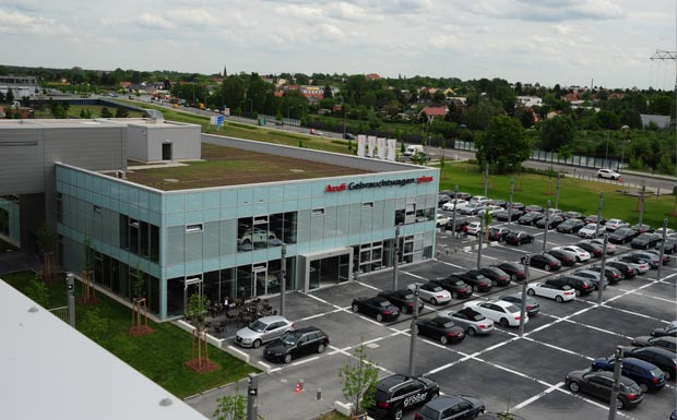 von 22: Blick vom Dach des Terminal-Gebäudes auf das Gebrauchtwagen-Verkaufshaus