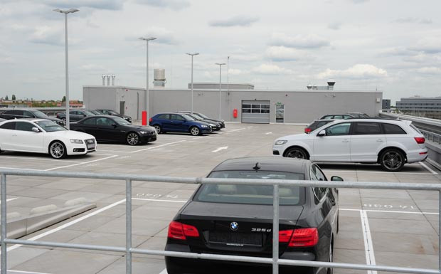 von 22: Das Parkdeck (derzeit noch offen, eine Überdachung mit Gründach ist geplant) mit den "Service-Income-Parkplätzen".