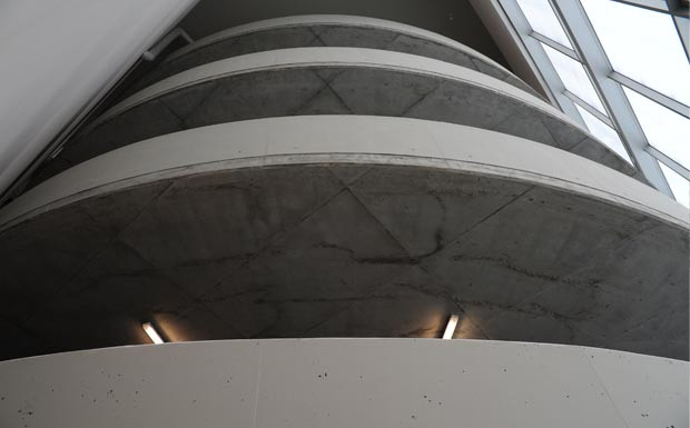 von 22: Die Fahrspindel mit extra niedrigen und gerundeten Randsteinen erschließt mit ausgeklügelter Verkehrsregelung den Prozess-Verkehr auf den fünf Levels des terminal Gebäudes.
