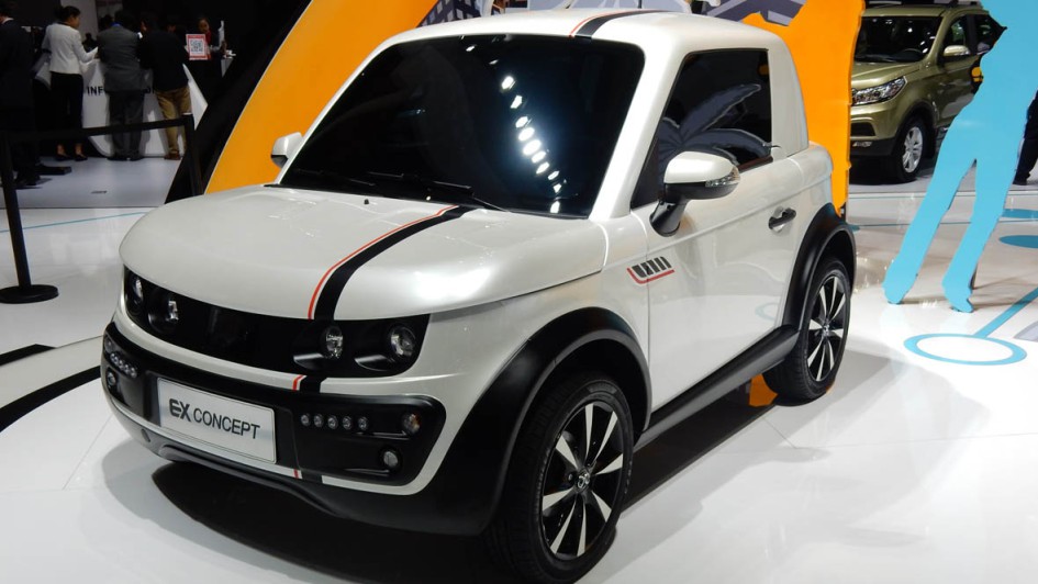 von 11: Gerade mal 2,88 Meter lang ist die Studie eines Elektromobils von BAIC. Als reiner Stromer kommt er nach chinesischer Norm gut 200 Kilometer weit, bei Tempo 60 sogar 260 Kilometer