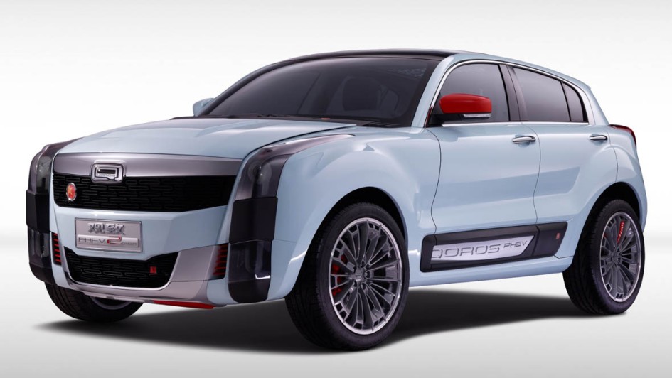von 11: Das Team um den früheren Mini-Designer Gert Volker Hildebrand präsentierte auf der Autoshow in Shanghai seine Ideen für ein kleines SUV in der Größe eines Nissan Juke. Plug-In-Hybrid mit elektrischem Antrieb der Hinterachse, Aufladung per Induktion