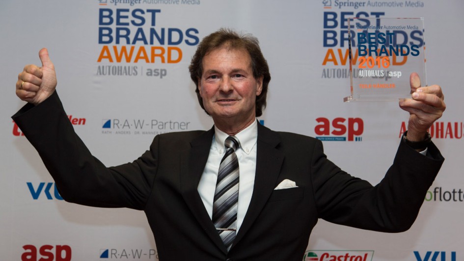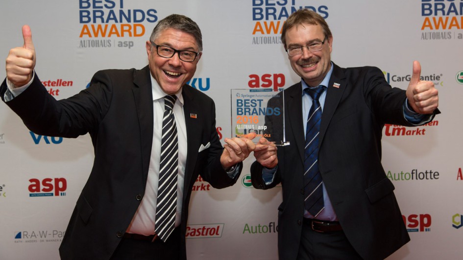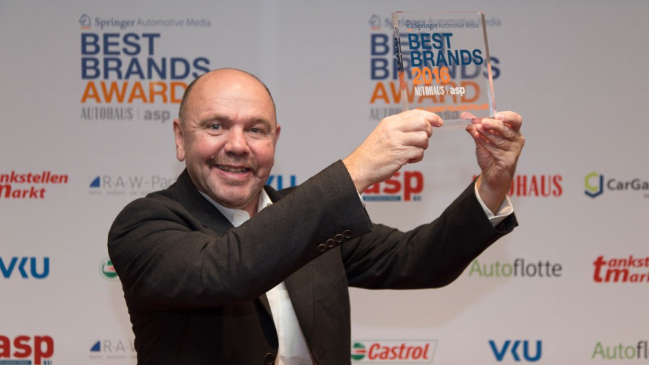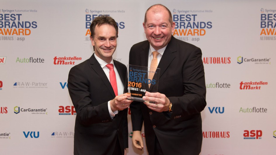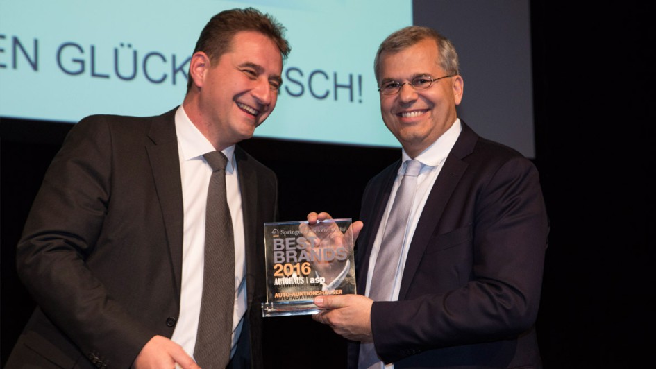 von 18: Bei den Auto-Auktionshäusern siegte BCA. Die Trophäe ging an Dr. Matthias Quadflieg - hier mit Michael Harms, Leiter Sales und Marketing Springer Automotive Media.