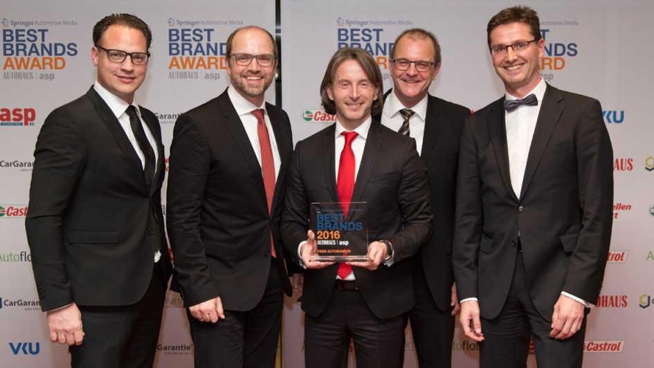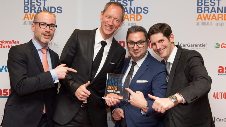 von 18: Das beste Image unter den Online-Autoportalen hat Mobile.de, vertreten durch Daniel Breves, Malte Krüger, Torsten Wesche und Christian Maas.