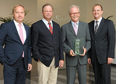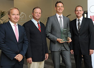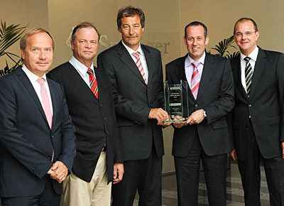 von 11: Den ersten Preis bei den "Deutschen Premiumfabrikaten" gewann zum zweiten Mal die Mercedes-Benz Bank, vertreten durch Vertiebsleiter Harald Schneefuss (3.v.l.) und Vorstandsmitglied Anthony Bandmann (2.v.r.).