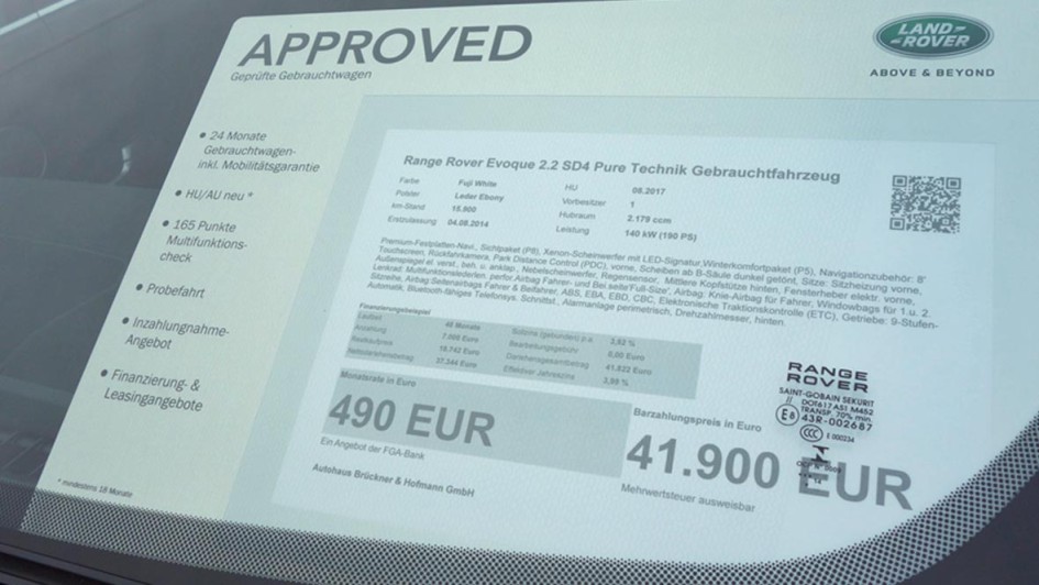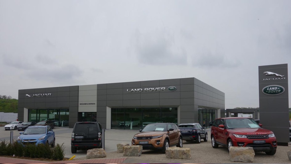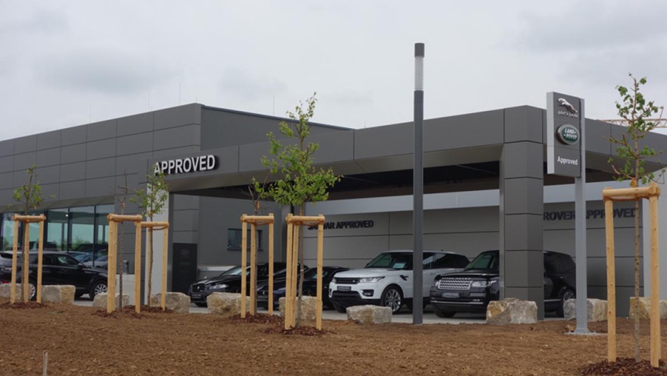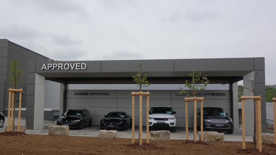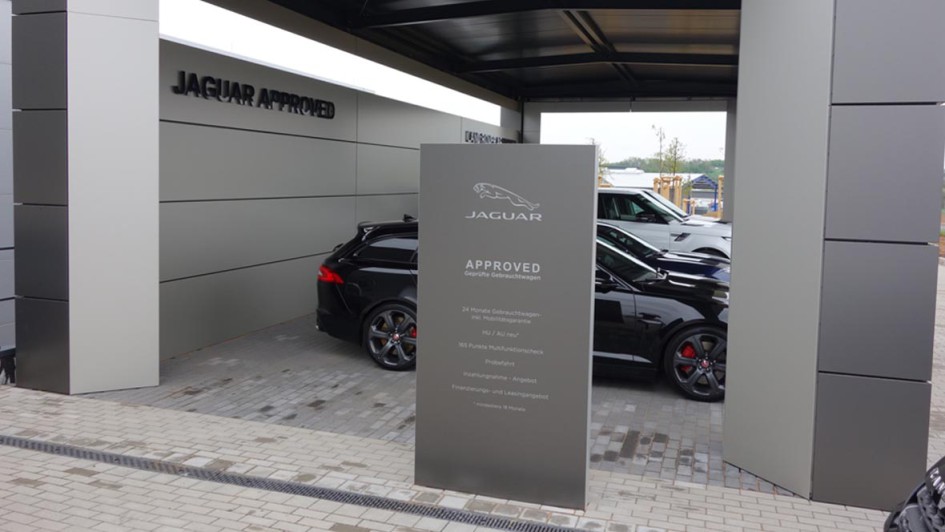 von 10: Peter Modelhart, Geschäftsführer Jaguar Land Rover Deutschland GmbH (l.), Michael Brückner (Brückner & Hofmann), Ralf Speth, CEO Jaguar Land Rover, und Olaf Verfürth, Leiter Gebrauchtwagen Jaguar Land Rover Deutschland, beim Start von "Approved" in Würzburg-Kürnachl.