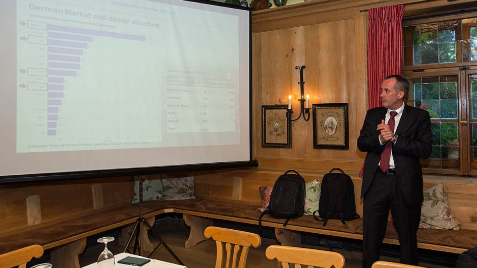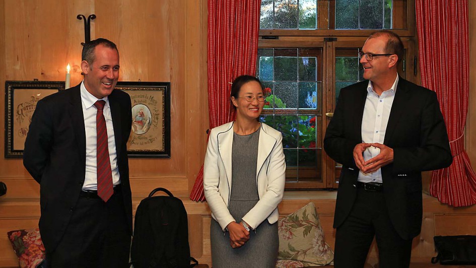 von 4: Chefredakteur Ralph M. Meunzel (r.) und Lei Yang, Project Manager AUTOHAUS CHINA, luden die Gäste am Abend zu einem informativen Austausch mit Ehrengast Anthony Bandmann, Sprecher der Geschäftsführung der Volkswagen Bank.