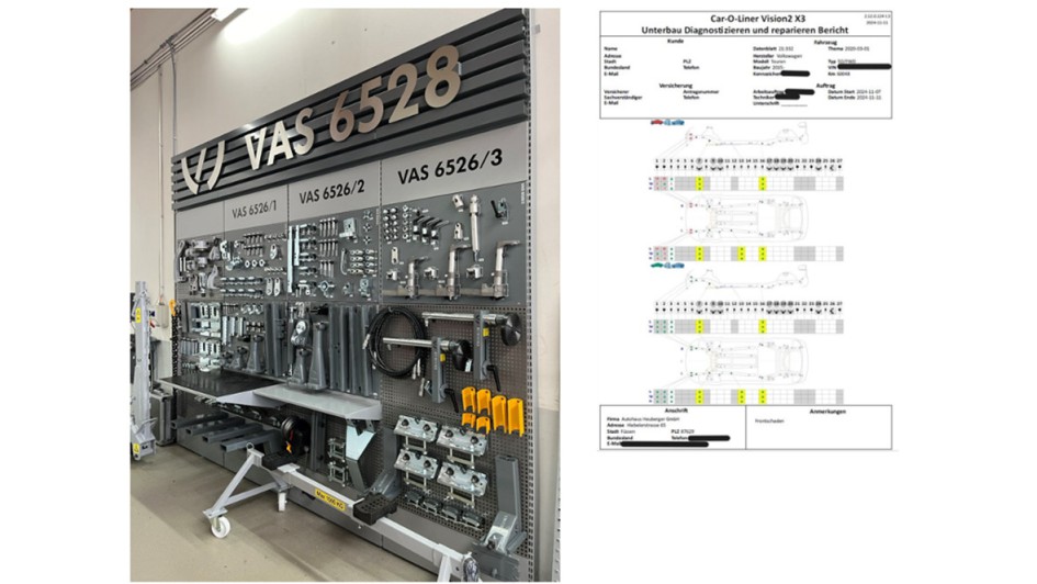 von 15: Das Caroliner Mess- und Richtsystem ermöglicht die digitale 3D-Vermessung der Karosserie. Es wird als Richtsystem für die Reparatur von Karosserieschäden (ähnlich einer Richtbank) eingesetzt.
