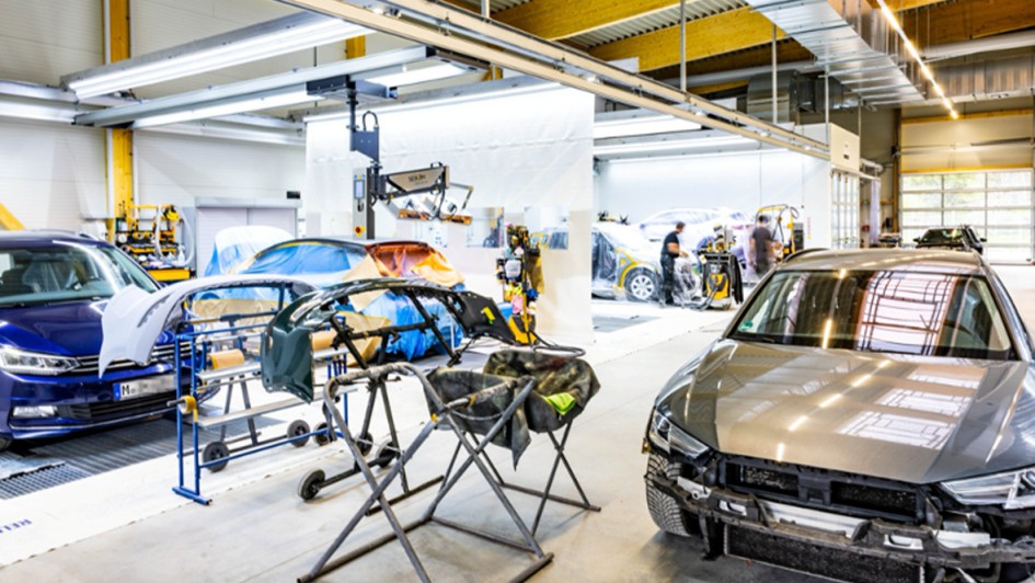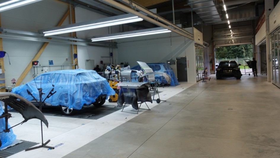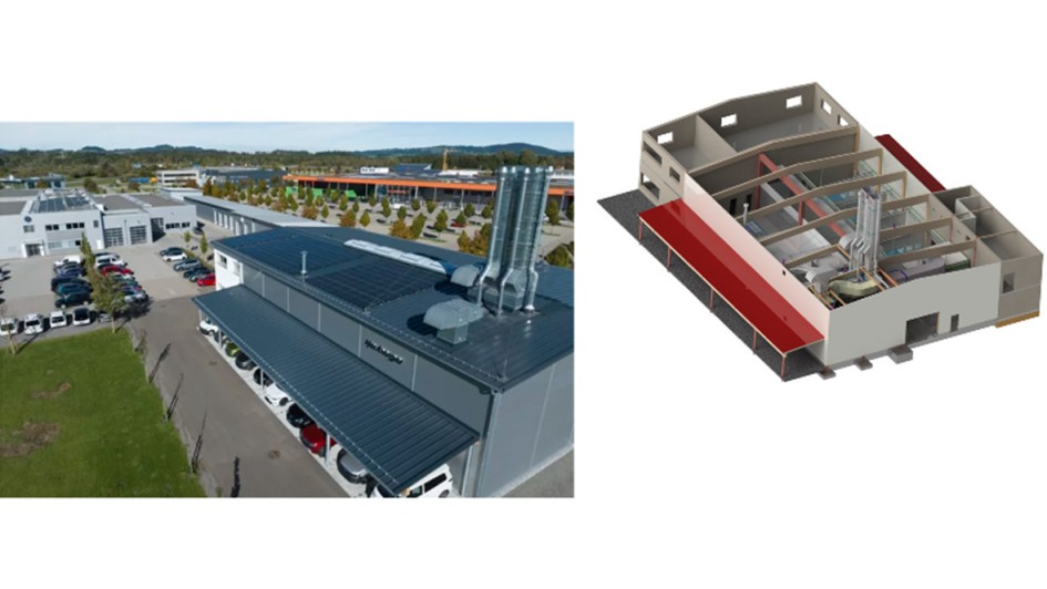 von 15: Die neue Lackmanufaktur im Autohaus Heuberger in Füssen: Modernste Technik und größtmögliche Nachhaltigkeit Rechts: 3D-Planung und Darstellung der einzelnen Leistungsbereiche – Schnittansicht. Ein Vorbild für transparente Planung - Sehon macht das möglich.