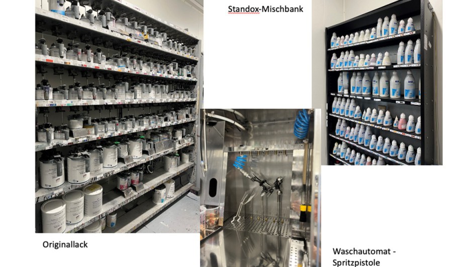 von 15: Manfred Merkel hat über viele Berufsjahre die Geschicke im Bereich Lackier-Handwerk im Alltag verantwortlich gestaltet. Er hat bei der neuen Heuberger-Lackiererei seine ganze Könnerschaft, sein Wissen eingebracht und mit seinen sechs Lackierern, davon drei Lackiermeister und einen Auszubildenden die Prozesse für einen gelingenden Alltag eingezogen. Er hat beim Rundgang so einmalig von Schritt zu Schritt dokumentiert, weshalb er wahrlich Meister seines Handwerks ist. Er will sich nun in den Ruhestand verabschieden. Derartige "Lackier-Perlen" darf man nicht gehen lassen. Welch ein Verlust! Manfred wird ein besonderes Vorbild bleiben und in seiner "alten Heimat" immer gerne gesehen sein! Rechts der Schulungs- und Sozialraum im ersten Stock.