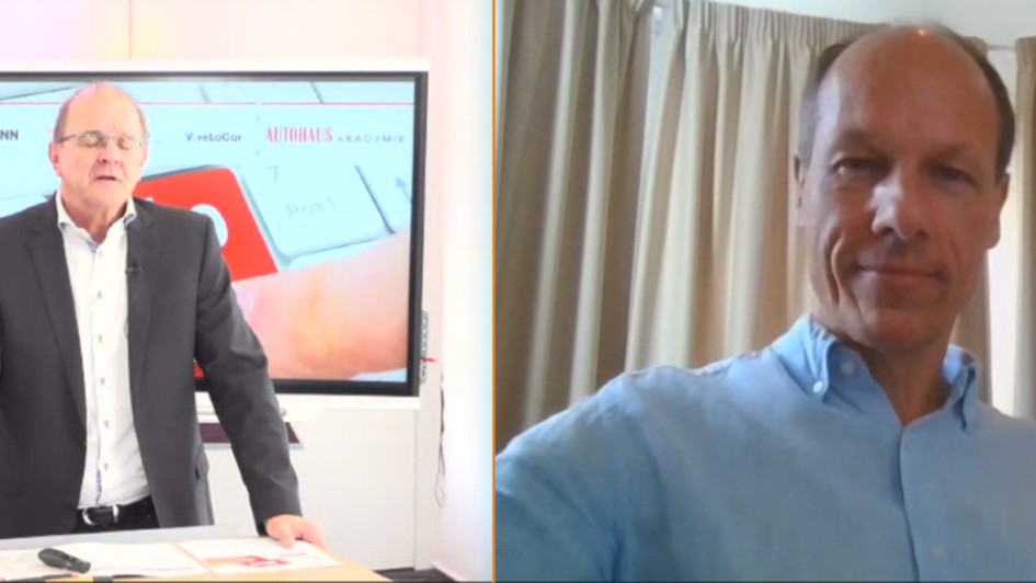 von 9: Ebefalls "per Bildschirm" Gast beim Kongress: Patrick Rittich, Bereichsleiter Kooperationen und Versicherung bei Bank11 (li.) und Dominic Schäfer-Elmayer, Leiter smive, Bank11.