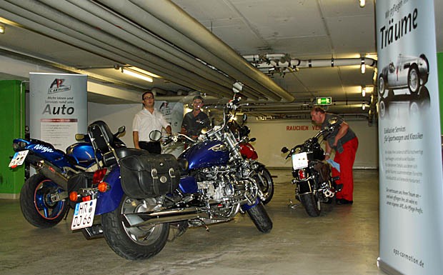 von 12: Die Jungs von APZ bereiten die Maschinen der Teilnehmer für die Tour vor - mit Hochglanz durch die nächsten Tage! (Bild: Susanne Schwarzenböck)