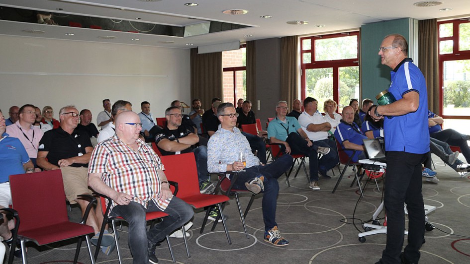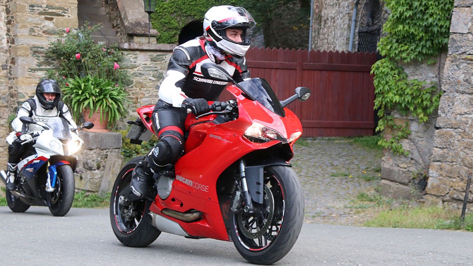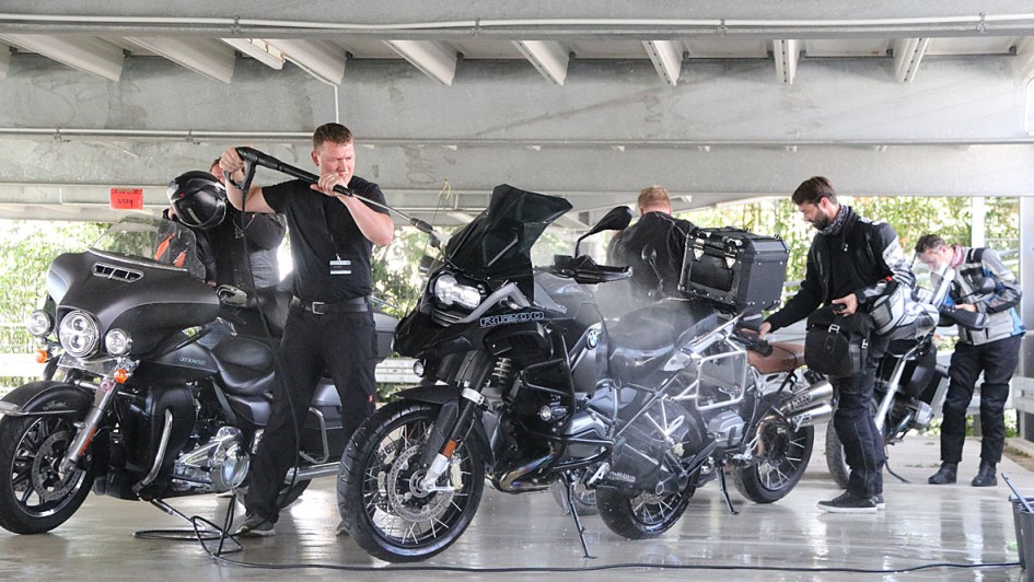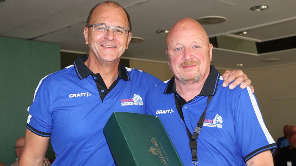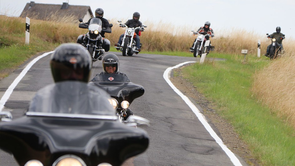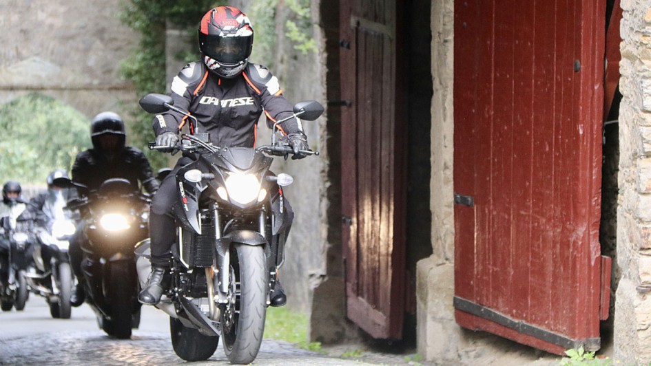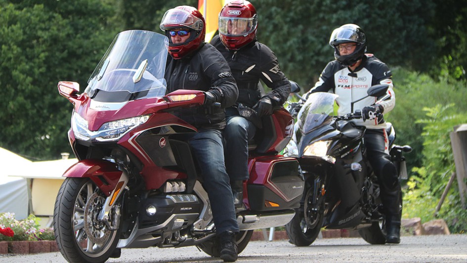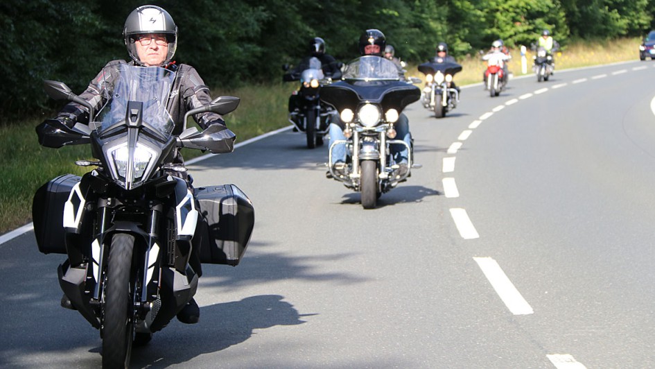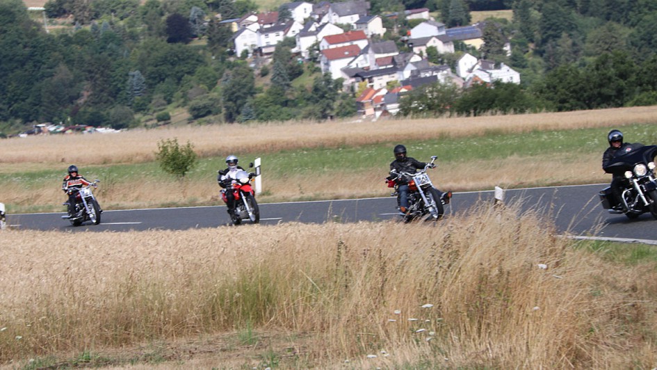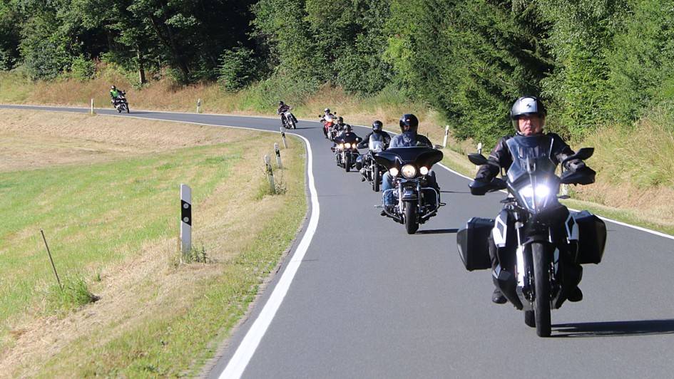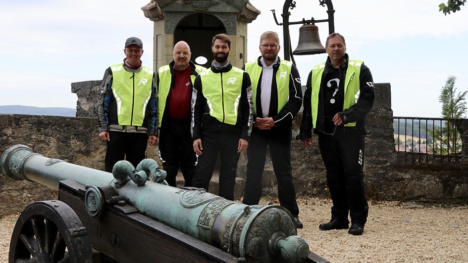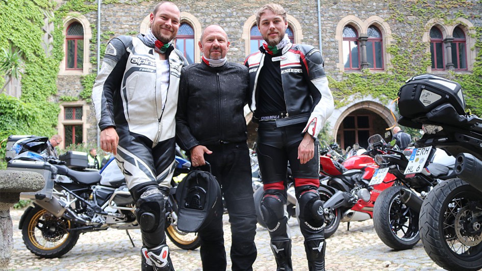 von 20: Gruppenbild im Hof von Schloß Braunfels: Rund 50 Branchen-Biker sind am Freitag zur 19. AUTOHAUS Motorradtour aufgebrochen. Auf zwei Tagestouren wird der Taunus erkundet.