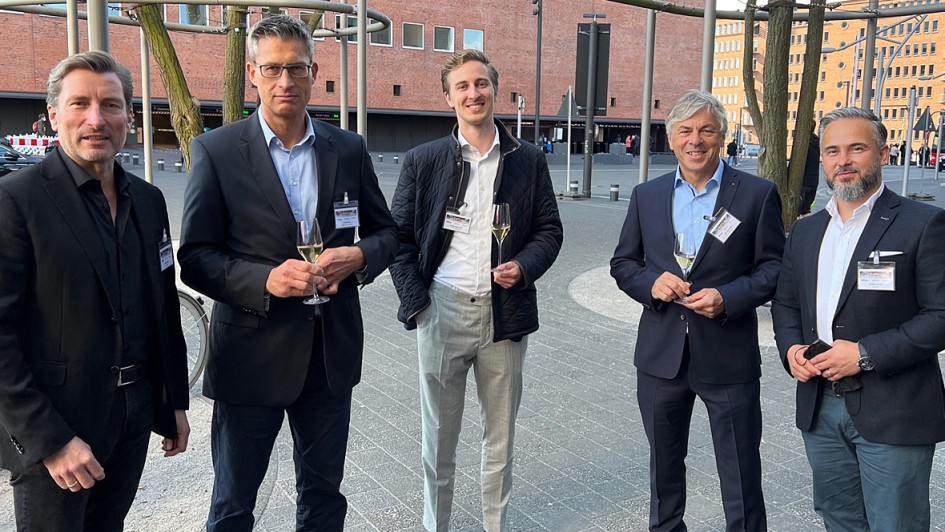 von 15: V.l.n.r.: Ralph Missy (e-mobilio), Frank Lück (Lüdemann & Zankel), Philip und Tim Schneider (Auto Schneider) sowie Robert Lasek (Auto1.com)