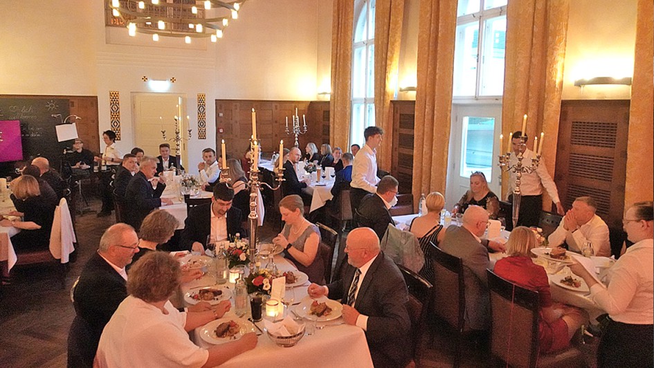 von 16: Auf die Wirkung kommt es an! Die Raumdimension, dessen architektonische Gestaltung, die Lichteffekte, die geschmückte Tafel mit hochdimensionierten Kerzenleuchter, die bunte Vielfalt der Kleidung, kunstvolle Musik, vorzügliches Essen ("Dry Aged Beef" oder „Tortellini Giganti"), Humor mit herzhaftem Lachen… Sternstunden!