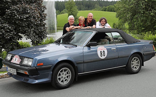 von 16: Volker Zweigler von Webmobil24 und Jürgen Altendorf unterwegs mit Regine und Axel Schimmel (Team 88) im Mitsubishi Sapporo Cabrio.