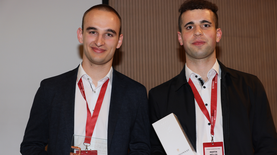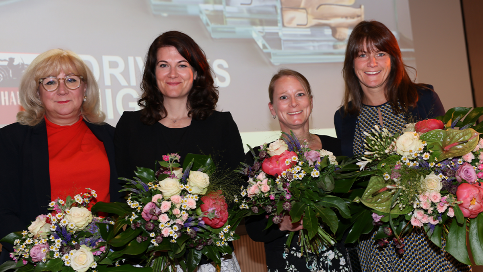 von 16: Dr. Clemens Mayr (Dekra; li.) und Thomas Hanswillemenke (Santander; re.) gratulieren Thomas Timmermanns zum Preis "Best of show" für ...