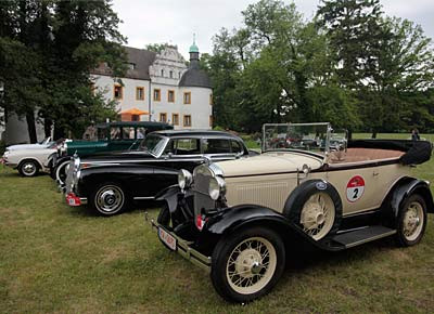 von 12: Die passende Kulisse für einen Oldtimer-Stopp bot das Schlosshotel Sallgast in der Lausitz.